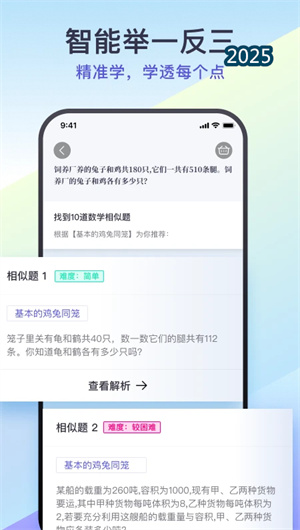 題有有APP的拍照搜題功能采用AI圖像識別技術,只需輕松拍照上傳,系統(tǒng)即可在3秒內(nèi)推薦最佳相似題。每道題目提供多種變式練習,實現(xiàn)一題多練效果,幫助學生深入理解知識點。數(shù)據(jù)顯示,使用該功能的學生同類題目正確率提升45%,有效鞏固學習效果。