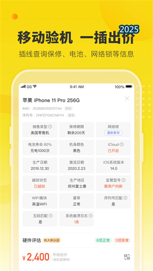基于大數(shù)據(jù)挖掘的實時報價引擎,每日更新全國主要二手市場的價格波動數(shù)據(jù)。系統(tǒng)根據(jù)檢測結(jié)果自動生成殘值評估報告,考慮因素包括硬件折舊系數(shù)、市場供需指數(shù)和版本地域差異,支持一鍵生成帶二維碼的電子檢測證書,便于交易雙方即時確認。
