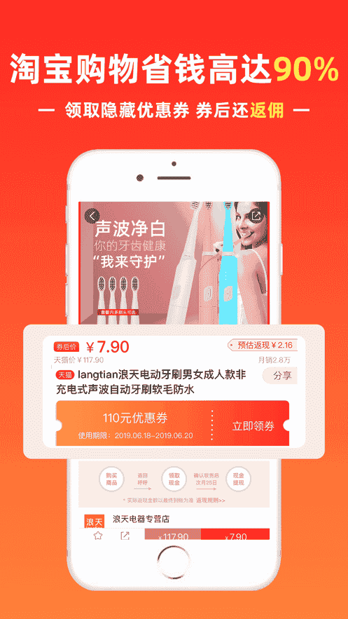 3、淘寶購物省錢高達90%,領取優惠券券后還返傭。