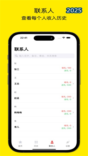 “人情賬本”采用用戶友好設計,界面簡潔直觀,操作便捷,即使是新手用戶也能快速上手。通過引導教程和操作提示,用戶可以輕松掌握各項功能的使用方法。自定義主題和界面布局功能還支持用戶根據(jù)個人喜好調(diào)整界面風格,進一步提升使用體驗。