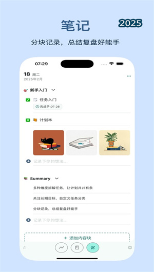 計劃本App提供時間圖譜功能,用戶可以在時間線中全覽一天的任務執行過程。通過時間線展示、任務詳情和任務進度跟蹤等功能,用戶可以清晰了解每個任務的執行情況。此外,App還支持任務備注和附件添加功能,用戶可以為每個任務添加詳細說明和相關文件,確保任務信息的完整性。