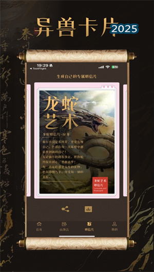 用戶可基于異獸基因算法生成獨一無二的龍蛇藝術明信片,并利用數字水印和區塊鏈存證技術將其轉化為NFT藏品。App提供智能配色系統,幫助用戶優化云雷紋、蟠螭紋等傳統紋樣的色彩搭配,并支持社交分享至各大平臺,讓藝術創作更具傳播性。