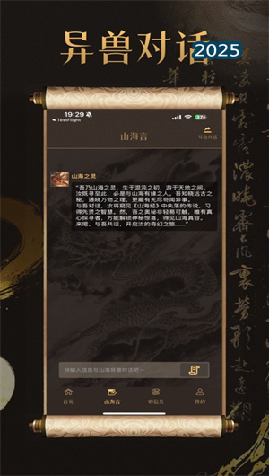 通過自然語言處理(NLP)技術,用戶可與應龍、燭龍、相柳等上古異獸進行實時對話,深入了解它們的傳說背景。系統采用深度學習模型,確保每一次交互都能提供符合神話典籍的精準回答。此外,App還提供語音合成功能,讓異獸的回應更具沉浸感,用戶甚至能聽到龍吟、蛇嘶等特色音效,增強互動體驗。