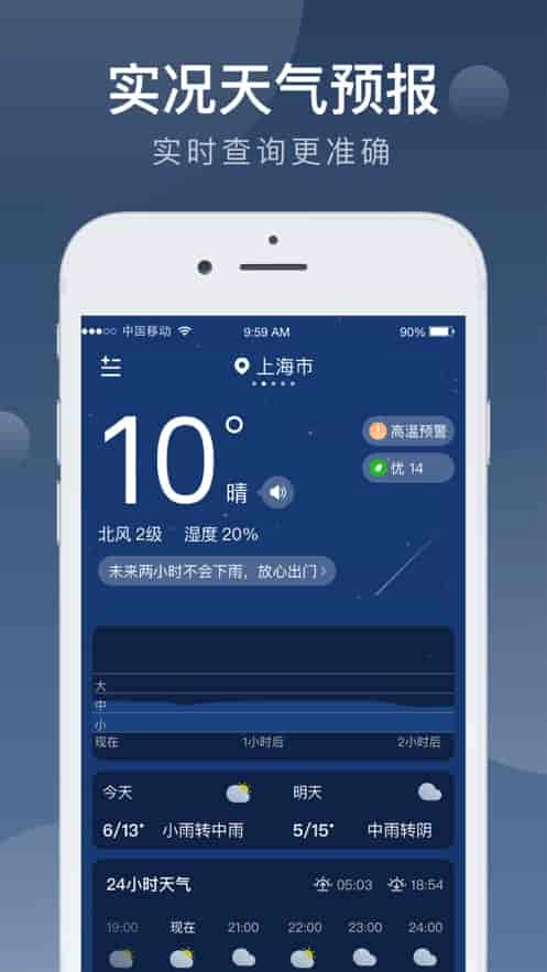 3、即時(shí)天氣信息:預(yù)報(bào)幾點(diǎn)下雨,溫度變化。