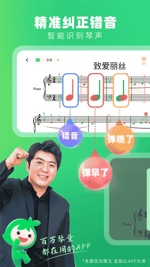 2、彈鋼琴實時精準糾正錯音,智能識別琴聲樂。