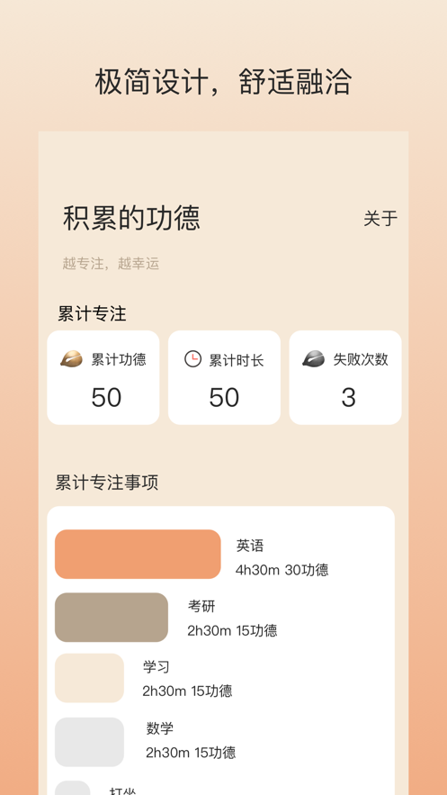 集中能量兌換獎品:越專注,越能攢集功德,用戶可以將攢下的能量兌換為豐富的獎品,享受成果。