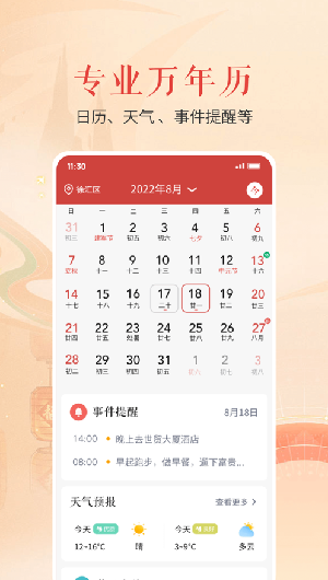 最美萬年歷App,一款獨具匠心的萬年歷,致力于做中華最美文化的傳承者。為用戶分享傳統知識,打造文化社區。同時又是一款貼心懂你的日歷,為用戶提供個性生活資訊,日程提醒,天氣播報,記賬,便簽,暖心雞湯等基礎生活服務。