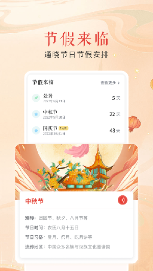 中華傳統節日:介紹各類傳統節日的來歷、風俗等知識,幫助用戶更好地了解與傳承傳統文化。