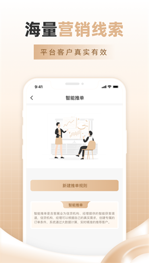 吉客展業App由廣州市綠地吉客小額貸款有限責任公司打造的一款移動獲客展業利器。該應用旨在助力大家快速開單,降低獲客成本,提高展業效率。