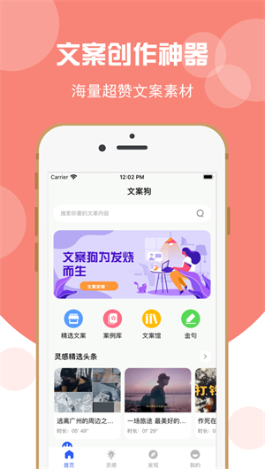 文案狗App是一款集詩(shī)詞、句子、朋友圈火爆文案、網(wǎng)易云熱評(píng)、抖音火爆文案、名人名言、經(jīng)典臺(tái)詞、座右銘、祝福語(yǔ)、優(yōu)美摘抄于一體的句子文案作文素材APP。它為你提供豐富多樣的文案素材,滿足你在不同場(chǎng)合的文案需求。