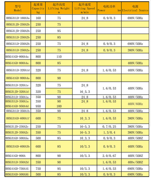 風電葫蘆 HHXG型 0.16T-0.95T參數圖
