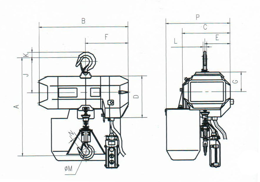 風電葫蘆 HHXG型 0.16T-0.95T結構圖: