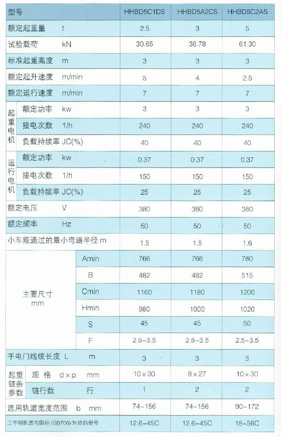電動小車式環(huán)鏈電動葫蘆參數表: